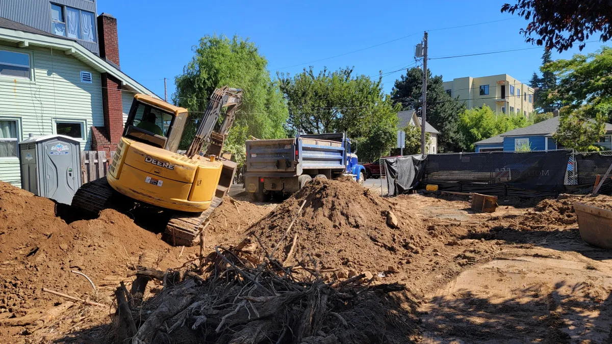 Trees, stumps, rocks, and brush are removed. Excavation and grading follow, shaping the land to prepare for foundations, utilities, and drainage systems.